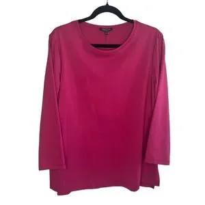 Lafayette 148 New York Long Sleeve NWT Magenta Pink Cotton Spandex Scoop Neck