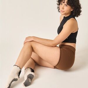 Lucky Honey Juliet Black Velvet Bow Grip Sock Cream Sock Pilates Barre