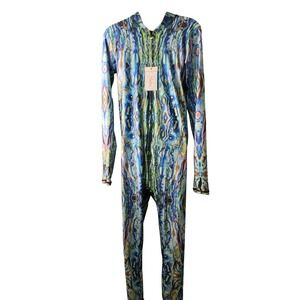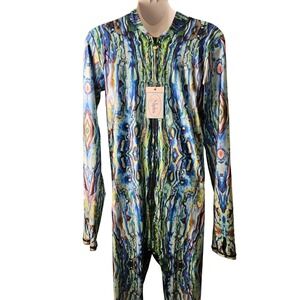 Slippins Long Sleeve Skinsuit Women OS Multi Color NWT Abstract Zip up