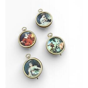 Each frame contains a miniature reproduction print of classic European artwork. The frames are connected by small decorative loops and can be displayed as a vertical wall hanging or separated to display individually.