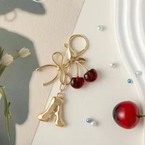 Bubble Letter & Bow Cherry Charm: Features a unique bubble-style initial with delicate bow and cherry accents. Perfect for adding personalized flair to bags, keys, or backpacks as a standout accessory.