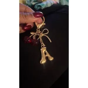 Bubble Initial Keychain Bow Cherry Gold Letter Bag Charm for Women Purse Handbag