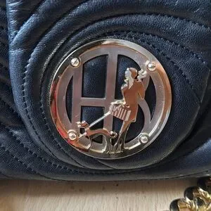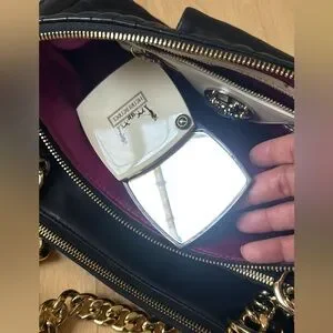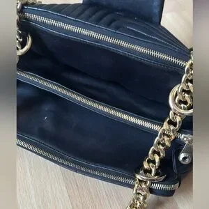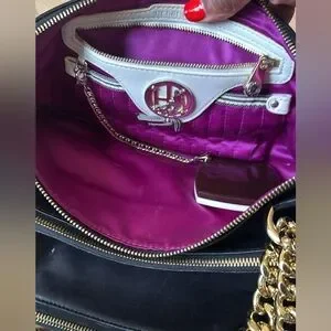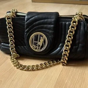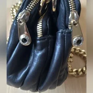 Henri Bendel Black Quilted Purse with Heavy Gold Chain