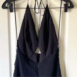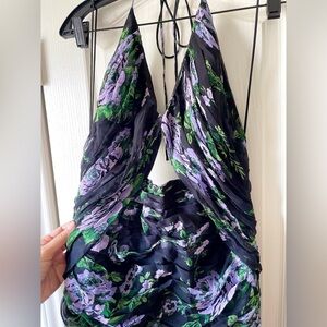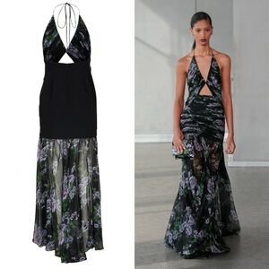 Carolina Herrera Floral Silk Chiffon Cutout Halter Maxi Gown Black Multi 4 NWT