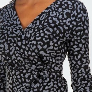 New Francesca's Women Mini Cheetah Long Sleeve Dress Size Medium Gray