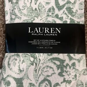 Lauren Ralph Lauren set of 2 Kitchen Towels White & Green Floral print