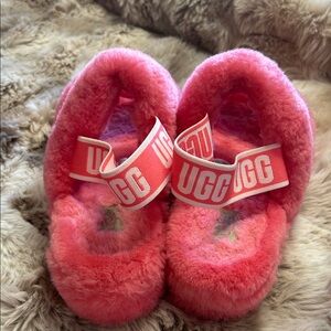 UGG Pink Fluff Double-Strap Slide with Branded Back Strap