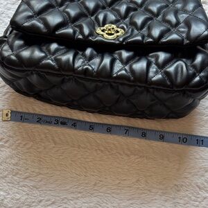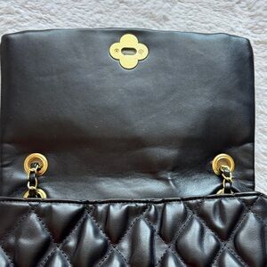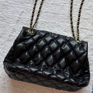 Stylish quilted black shoulder bag with a gold-tone chain strap. Soft padded exterior and secure turn-lock closure. Versatile design perfect for day-to-night wear. Timeless black color complements any outfit. Never used. Smoke free home