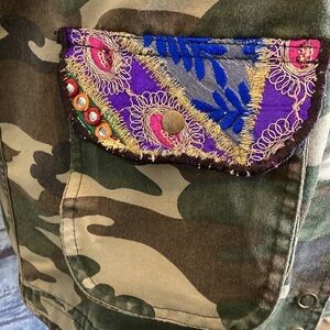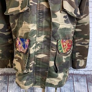Anthropologie Beautiful Stories Embroidered Camo Utility Jacket M Mixed Media
