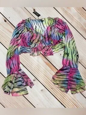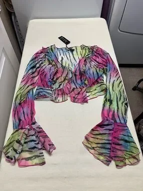 NWT Dolls Kill Generation Kiss L Zebra Rainbow sheer Top