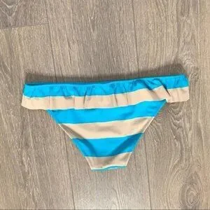 Victoria’s Secret Ruffle Blue Tan Striped Bikini Bottom.