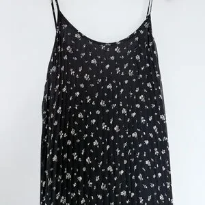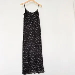 H&M Black Floral Pleated Midi Dress Size XS Spaghetti Strap Lightweight Summer
