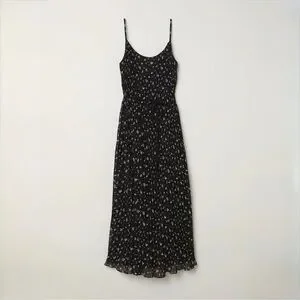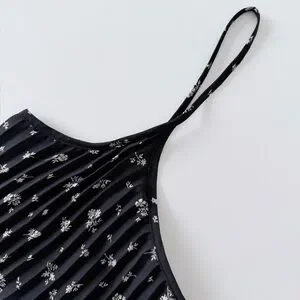Flowy black floral pleated midi dress by H&M with delicate spaghetti straps and lightweight chiffon-style fabric.