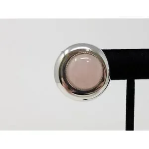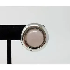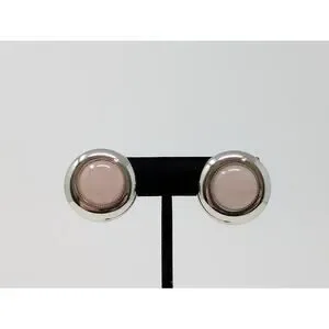 Silver Tone Pink Round Dome Button Clip On Earrings Classic Office