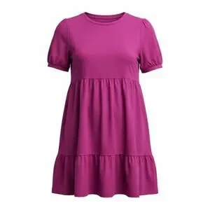 Comfortable and easy-to-wear Time and Tru women’s pink tiered dress in size Large (12-14). Features a soft stretch knit fabric, short sleeves, classic crew neckline, and a two-tier ruffle skirt for a relaxed, flattering fit. Pullover style makes it perfect for casual wear, errands, or lounging.