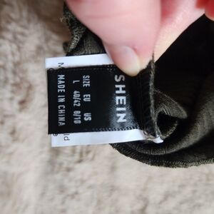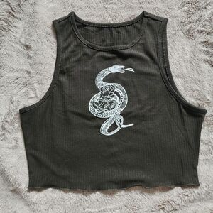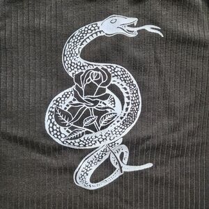 Chic dark green crop top with a detailed white snake design. Never worn. Says it's a large but fits more like a small