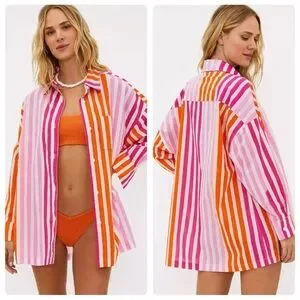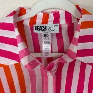 Beach Riot Shirt Alex Top Sunset Stripes Button Down Swim Cover Up Size L Petite