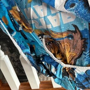 Vibrant Star Wars themed twin sheets featuring iconic characters. Set includes a top sheet and a fitted sheet. Perfect for fans and collectors. There’s a small tear on one corner of the flat sheet as shown in the picture.