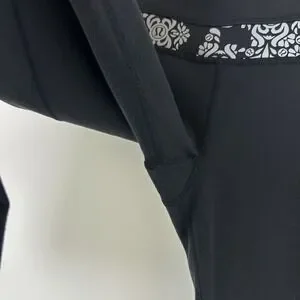 Lululemon flare yoga pant. Fabric is luon. Groovy floral reflective print at waistband.