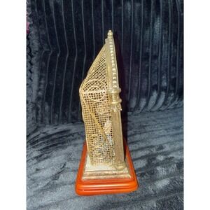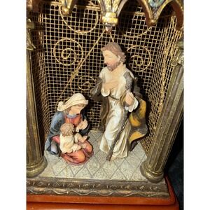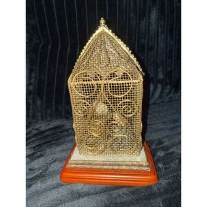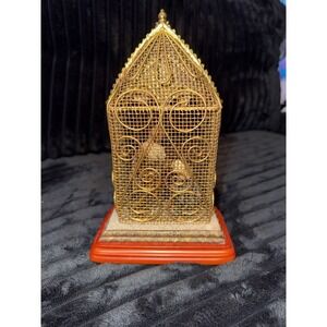 Vintage Nativity Scene Metal & Resin Display Gold Wire Frame & Wood -Great Cond!