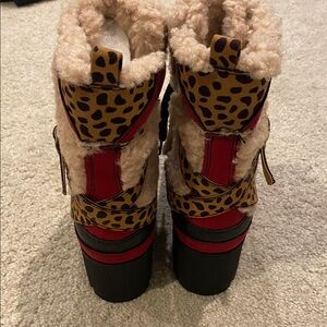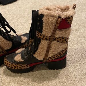 Color is Chefs, black, animal print and dark red with brown fur