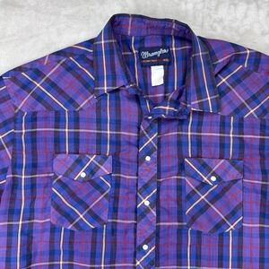 Vtg Wrangler Plaid Western Pearl Snap Shirt Mens XL XLong Tails Short Sleeve
