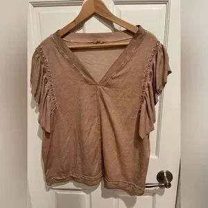 POL Anthropology Beige Ruffle Sleeve Blouse L