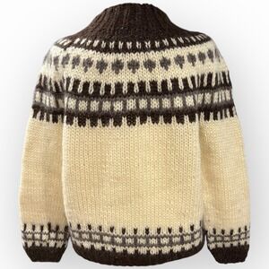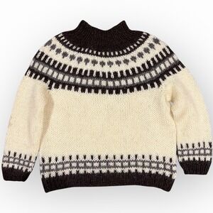 Vintage Icelandic Lopapeysa Wool Sweater Álafoss Lopi Yoke Cream Brown M