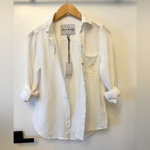 Lola River White Gauze Button Down Shirt XS | Lightweight Cotton | NWT