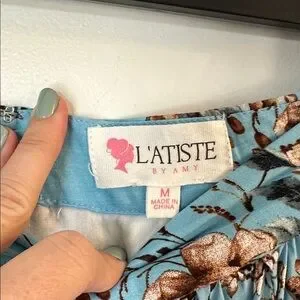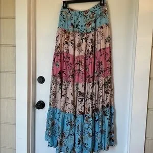 L'Atiste By Amy Boho Maxi Skirt Floral Tiered spring pink blue size medium. Excellent condition