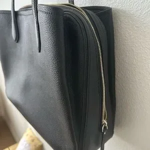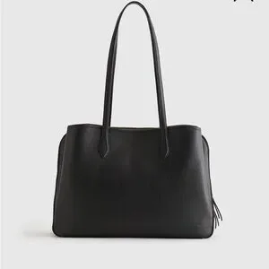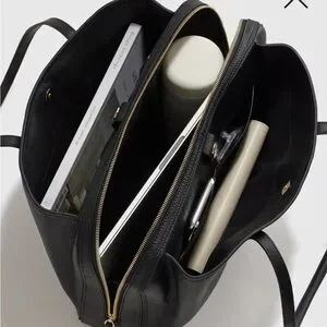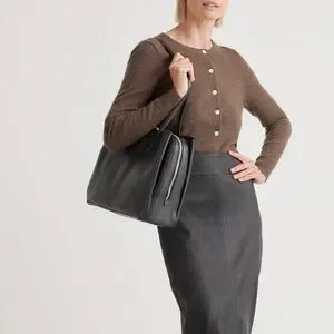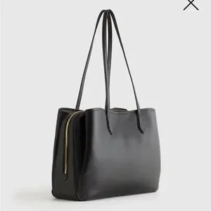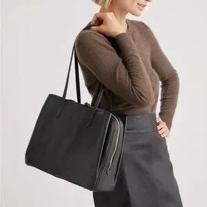 NWOT QUINCE Italian Black Leather Triple Compartment Work Bag