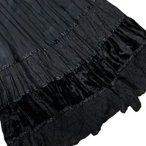 VTG Black Velvet Lace Nylon Tiered Maxi Skirt Small Pull On Whimsigoth Stretch