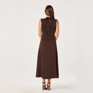 ASTR THE LABEL High Neck Tie Back Brown Midi Dress M