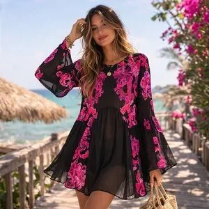 • Style: Sheer baroque print tunic mini dress