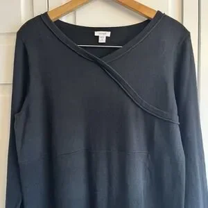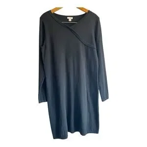 J.JILL PureJill Petite Med Cotton Cashmere Blend Faux Wrap Sweater Dress Black