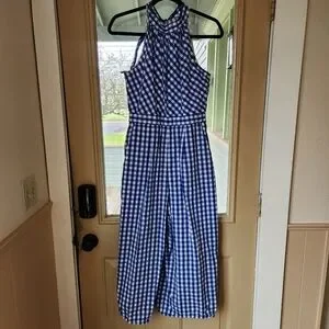 J. Crew high neck poplin cropped jumpsuit. Sapphire gingham. Size 4.