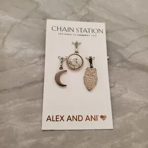 🌙 Alex and Ani Moon Owl Marble Wisdom Set Chain Station Charm Set 🦉