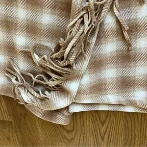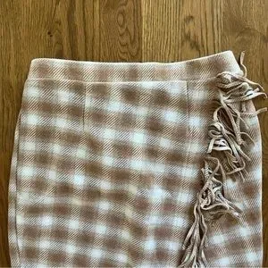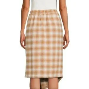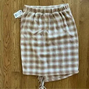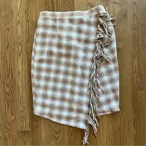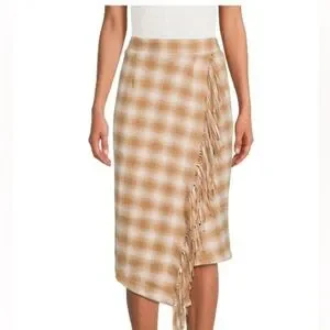 NWT Women's Fringed Faux Elastic Waist Plaid Blanket Wrap Midi Skirt (L)