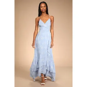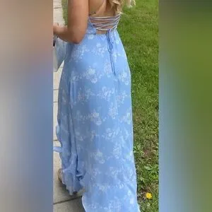 Light Blue Floral Lace-up High-low Maxi Dress - Size S