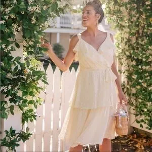 GAL MEETS GLAM Helena Light Yellow Eyelet Ruffle Dress Size 6P