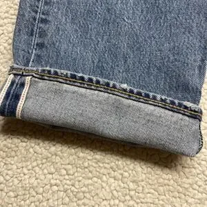 Levi's 501 ST jeans in a classic blue wash offer a timeless straight-leg silhouette with a traditional button fly. These durable denim pants feature a five-pocket design, signature red tab, and a branded leather patch at the back waist. The medium-blue denim shows natural fading and whiskering for a lived-in look, while the selvedge-style interior cuff detail adds a premium touch to this iconic workwear-inspired staple.