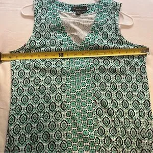 Tommy Bahama Pima Cotton Geometric Pattern Dress V-Neck Size Small Teal Green