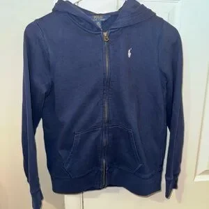 Polo Ralph Lauren Boys Navy Full Zip Hoodie Sweatshirt Size L 12-14 Pony Logo