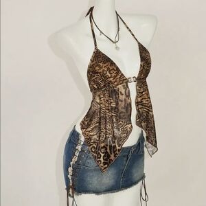 Sold‼️ Leopard Print Halter Handkerchief Top | Y2K Mob Wife Aesthetic