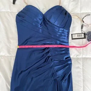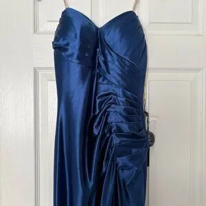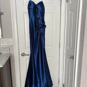 Faviana Navy Long Strapless Stretch Satin Dress Sweetheart Neck S10856 Glam Sz 4