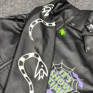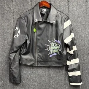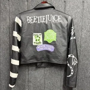 Stylish black jacket with Beetlejuice branding. Perfect for a unique look.