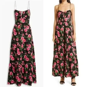 NEW Alice + olivia chantay smocked floral print poplin maxi dress SZ 10