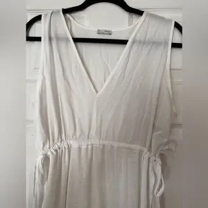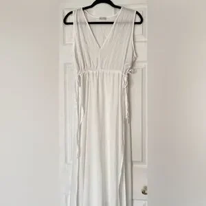 Zara double side slit maxi tunic dress v neck sleeveless waist tie large