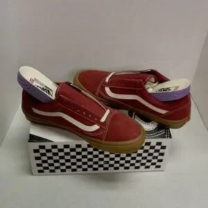 Stylish Vans Old Skool pro series in an elegant red suede and canvas upper with the grippy gum outsoles, and the amazing Pop Cush insoles that are perfect for everyday comfort casual wear and skating!
