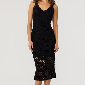 Toccin Kayla Crochet Midi Dress Black Knitted 100% Cotton Lining: Cotton/Spandex